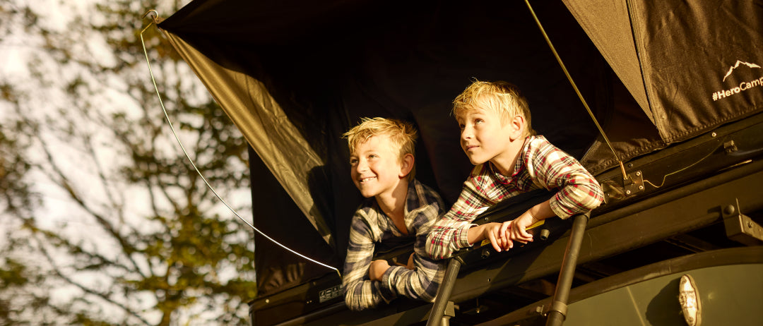 Een HeroCamper is door zijn compacte buitenmaten gemakkelijk achter de auto te trekken, maar dankzij de optionele Peak XXL daktent biedt hij toch plaats aan maximaal 7 personen. Twee volwassenen en een kind (tot 60 kg) slapen in de cabine, en twee volwassenen plus twee kinderen in de daktent.