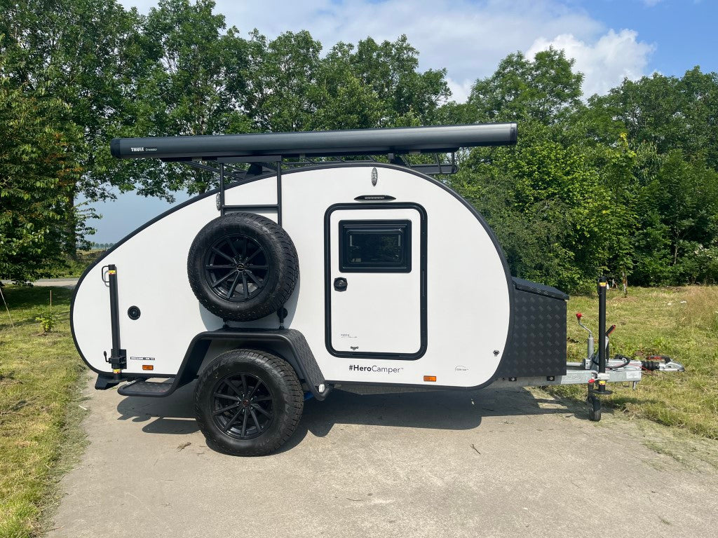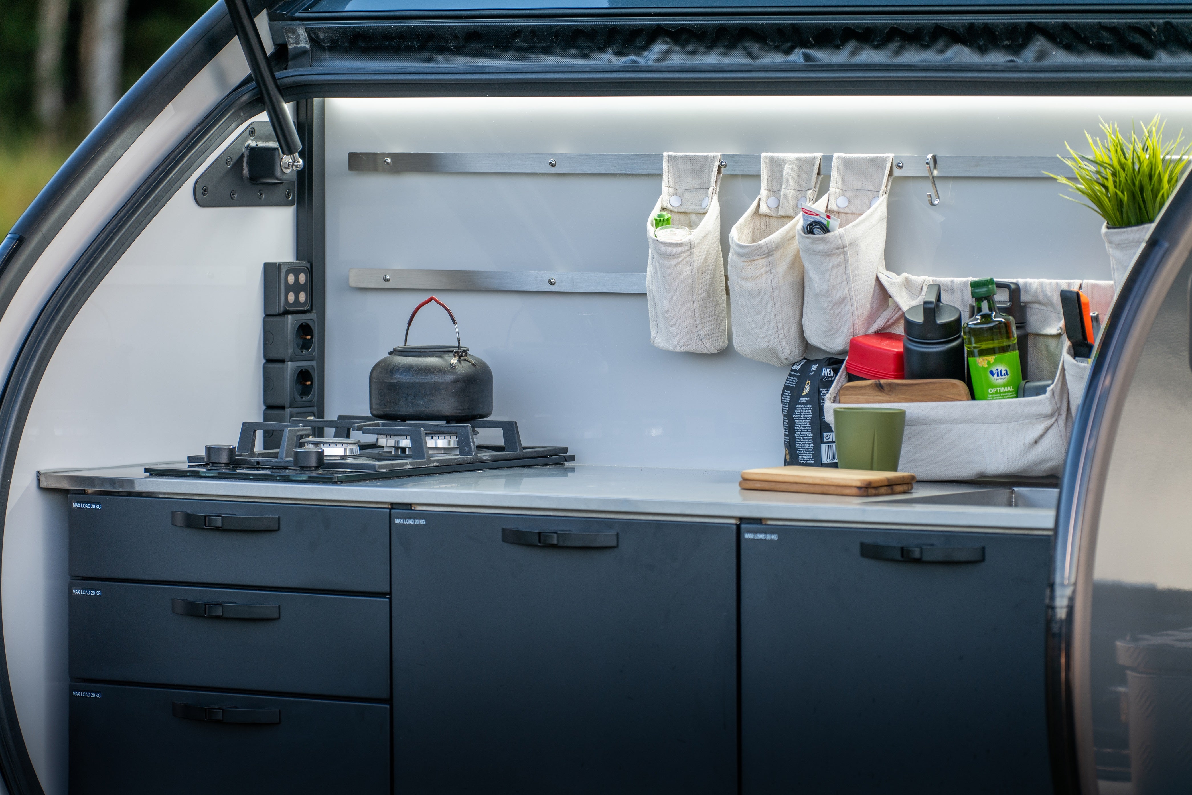 Een kampeertrailer is een kleine caravan die gebruikt kan worden om in te slapen of juist om bagage en outdoor uitrusting mee te nemen. Vaak ie een kampeertrailer ook voorzien van een keuken zoals die aan de achterzijde van de HeroCamper. Bij de Kuckoo Max is de keuken uitschuifbaar en kun je deze zowel van binnen als buiten gebruiken.