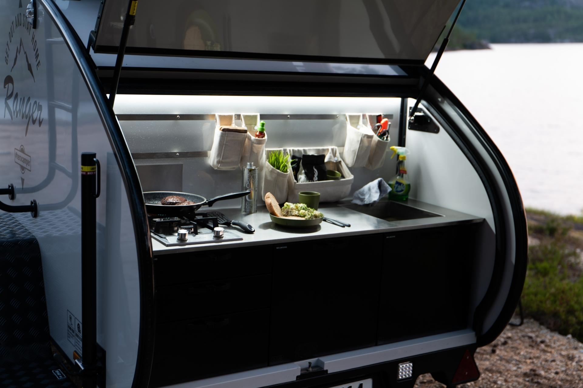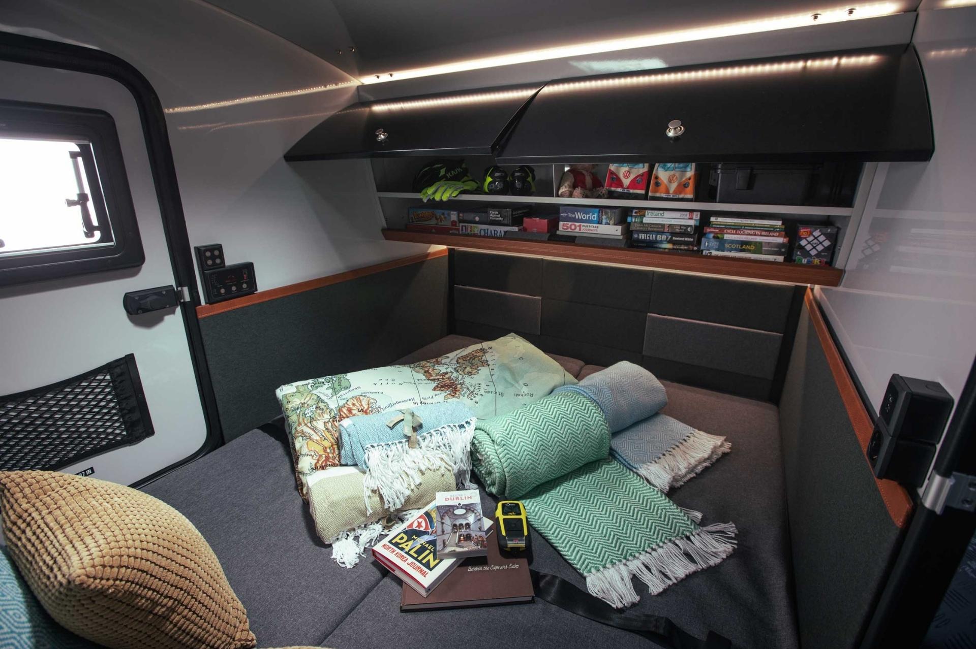 Squaredrop Caravans: In tegenstelling tot de ronde vormen van teardrops, hebben squaredrop-caravans een rechthoekige of licht vierkante constructie. Deze vorm biedt vaak meer binnenruimte en een hogere daklijn, wat het interieur comfortabeler maakt voor langere reizigers. Een voorbeeld hiervan is de Kuckoo Camper Max, die door zijn rechte lijnen ook eenvoudiger in te richten is met modulaire elementen.