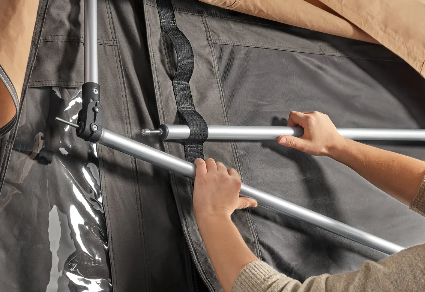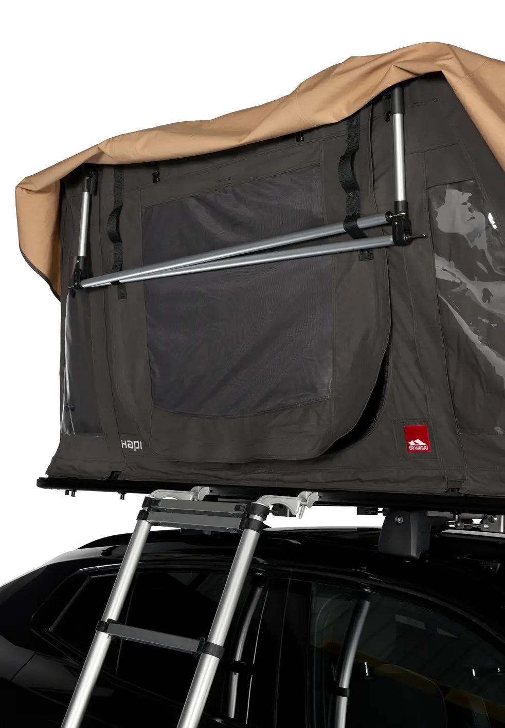 Deze tweepersoons daktent combineert premium comfort, slimme innovaties en ultieme flexibiliteit zonder concessies aan kwaliteit. De Vista L blijft binnen de standaardmaatvoering van de meeste auto’s; ideaal voor avonturiers die maximale vrijheid zoeken. Met het geavanceerde inklapsysteem klap je de Vista L in slechts 60 seconden uit, zodat je direct klaar bent voor je volgende avontuur. Het panoramische dakraam biedt uitzicht op de sterren en is voorzien van een verduisteringsoptie. Je klapt de tent in een handomdraai in, zonder je slaapzakken of kussens eruit te halen, ideaal voor de volgende overnachting. Of je nu een weekend weggaat of een roadtrip maakt, de Vista L past zich moeiteloos aan jouw reis aan.