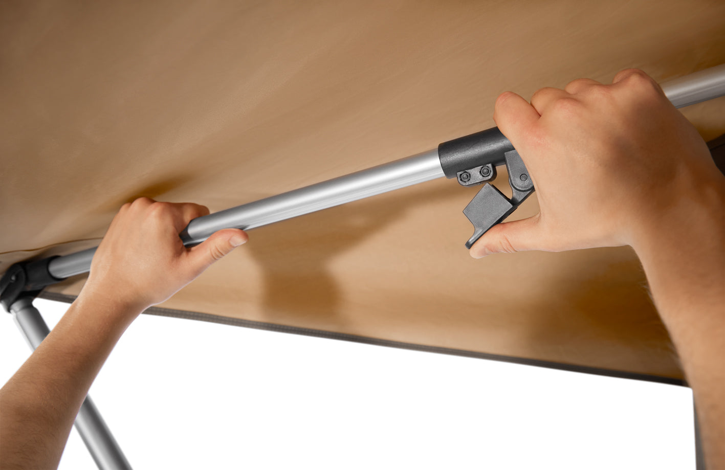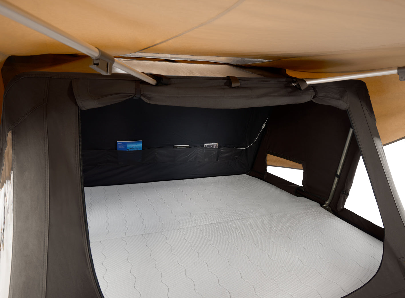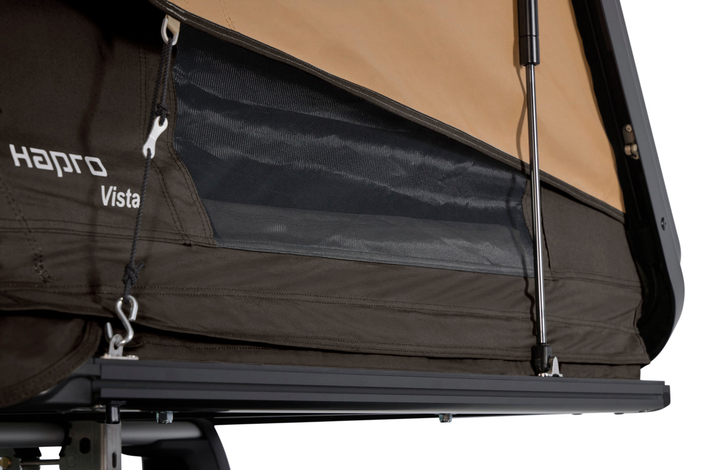 Ervaar het ultieme gevoel van vrijheid met de Hapro Vista daktent. Een eigenzinnig design, hoog afwerkingsniveau en innovatieve features maken de Vista tot een absoluut topproduct. Het geavanceerde in- en uitklapsysteem garandeert razendsnel en eenvoudig in- en uitklappen, waardoor je in 90 seconden klaar bent voor je nieuwe avontuur. Dankzij de brede opening en grote ramen aan de voorzijde van de tent geniet je van een fenomenaal uitzicht. Het duurzame, katoenen tentdoek, gemaakt door De Waard tenten, de royale binnenruimte en het luxe matras verzekeren je van heerlijk comfortabele nachten onder de sterrenhemel.