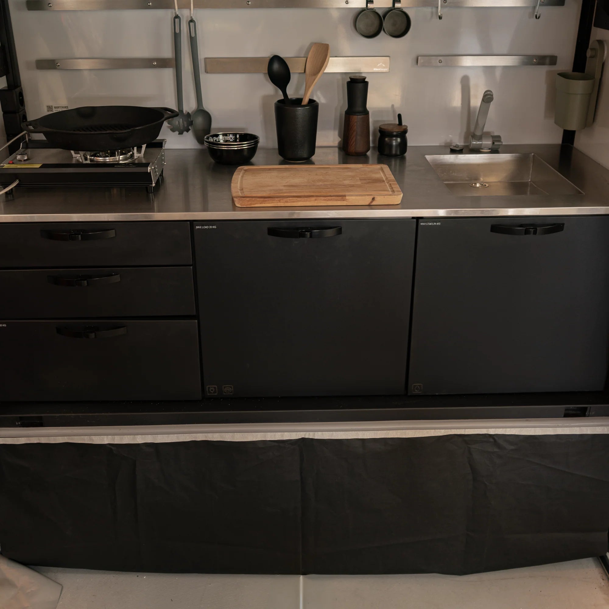 De keukentent wordt aan de achterzijde van de HeroCamper gemonteerd en biedt zowel ruimte om te koken als extra leefruimte. Het onderste deel van de keukentent is afritsbaar zodat je ook e en er worden haringen en scheerlijnen meegeleverd, zodat je de mogelijkheid hebt om de keukentent aan de grond te bevestigen.