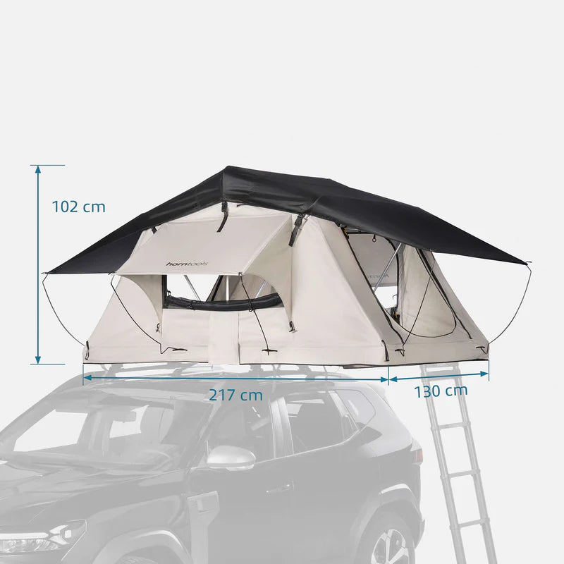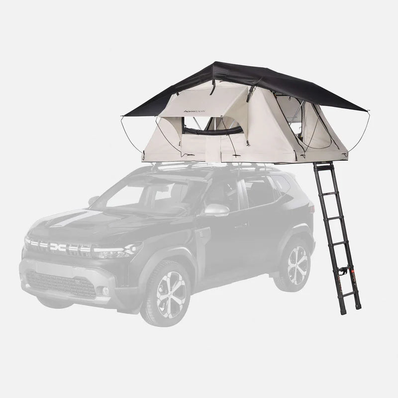 Voor de puristische kampeerder die op zoek is naar eenvoud en betrouwbaarheid is er de Horntools Track daktent. Deze no-nonsense daktent biedt betrouwbare bescherming tegen weer en wind, zonder dat het je budget overschrijdt. Licht van gewicht, compact van formaat en geschikt voor vrijwel elk voertuig – perfect voor avonturen met z’n tweeën.