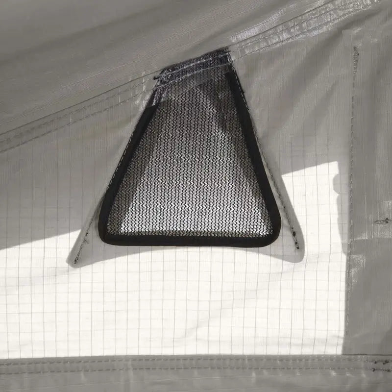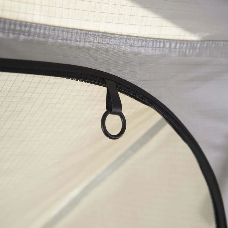 De tent is gemaakt van ademend canvas (280 g/m²), bestaande uit 80% katoen en 20% polyester. Dankzij het materiaal én de grote ramen met horren blijft het binnen fris en insectenvrij.