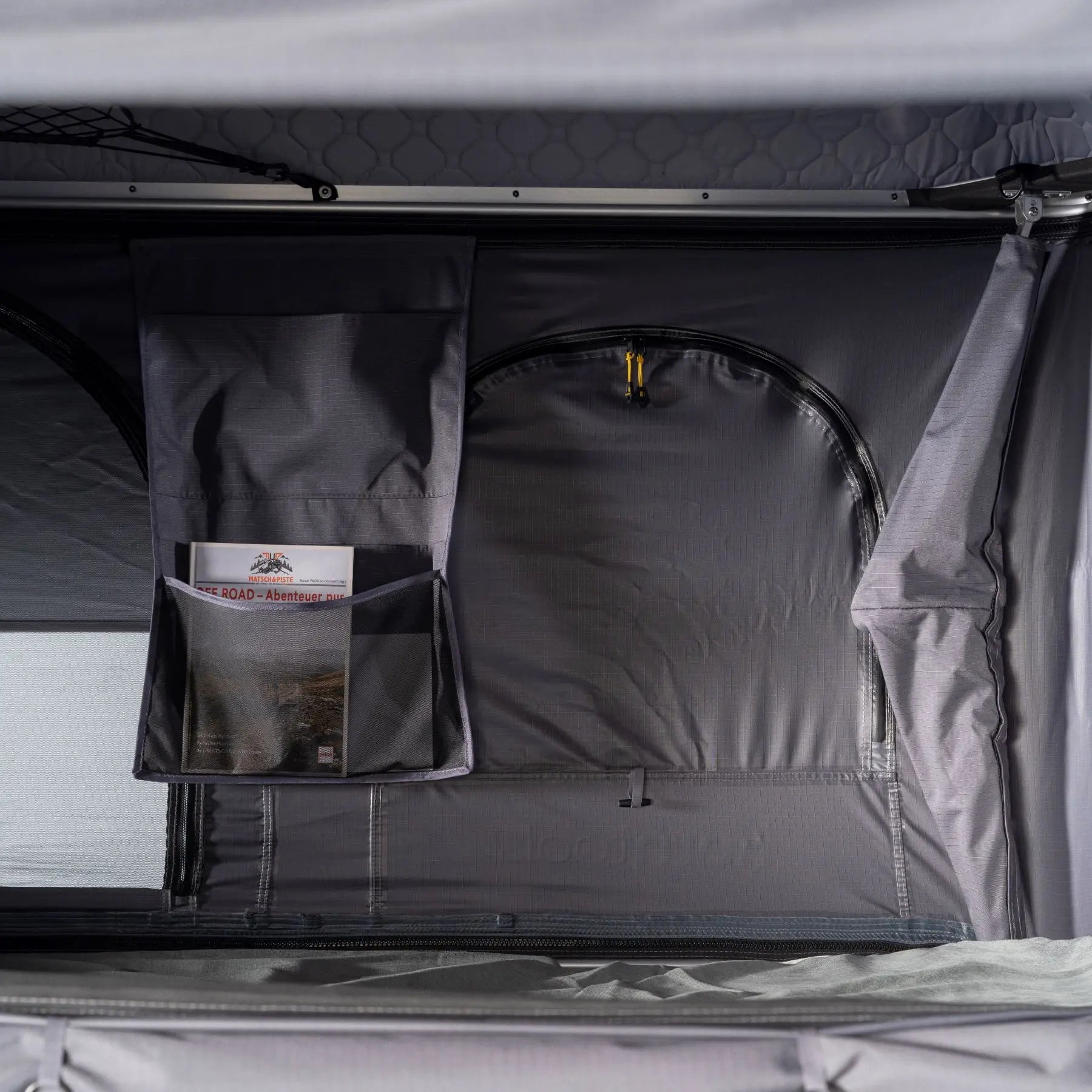 In het dak zit een handig opbergnet en aan de binnenwand kun je met klittenband organizers bevestigen. Buiten vind je een aparte schoenentas, zodat je tent vanbinnen schoon blijft. Extra handig: de schaal is hoog genoeg om je dekbed of slaapzak gewoon te laten liggen als je de tent sluit.