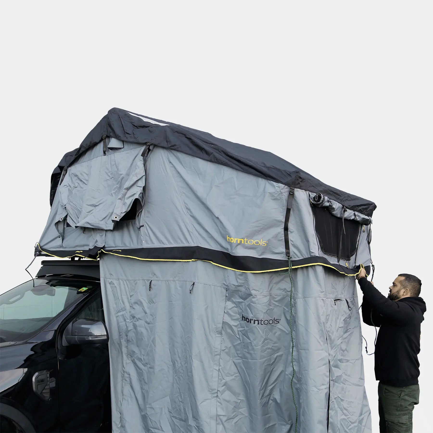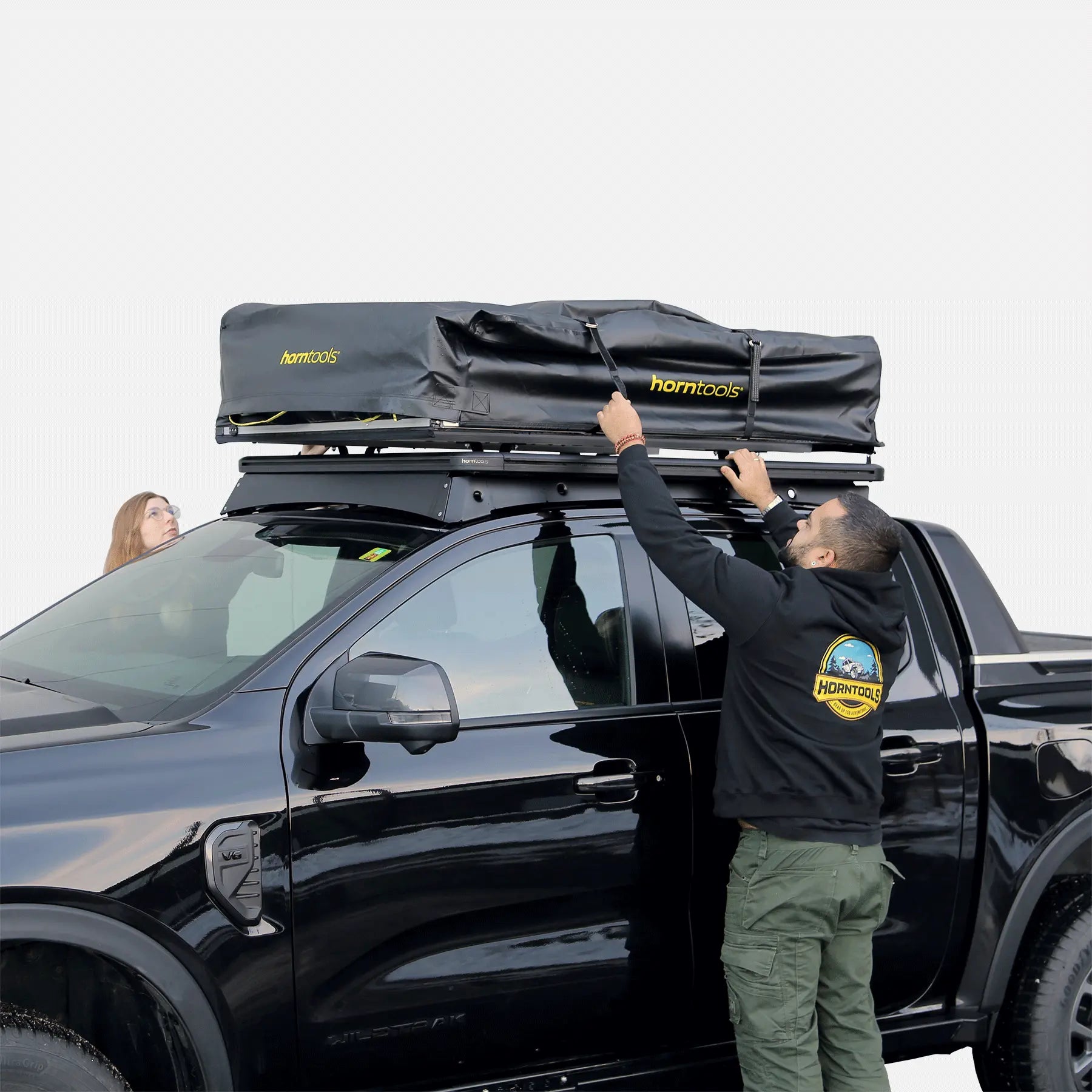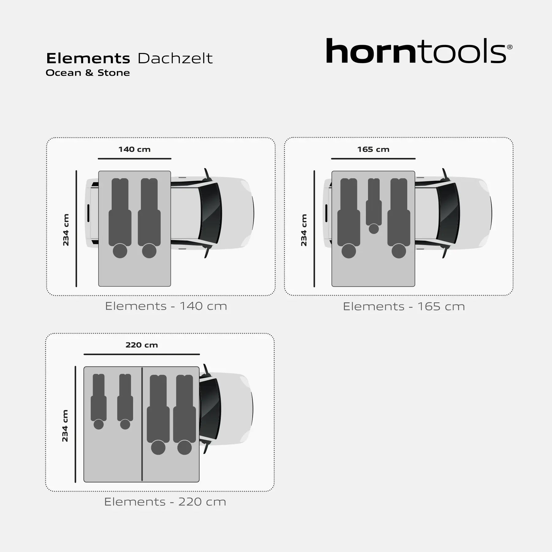 Ga je op avontuur? Dan is de Horntools Elements daktent jouw perfecte reisgenoot. Deze hoogwaardige daktent is ontworpen met jarenlange ervaring en voorzien van alle gemakken voor jouw overland- of kampeertrip. Of je nu de bergen intrekt of aan zee wilt overnachten: de Elements biedt comfort, bescherming én stijl.