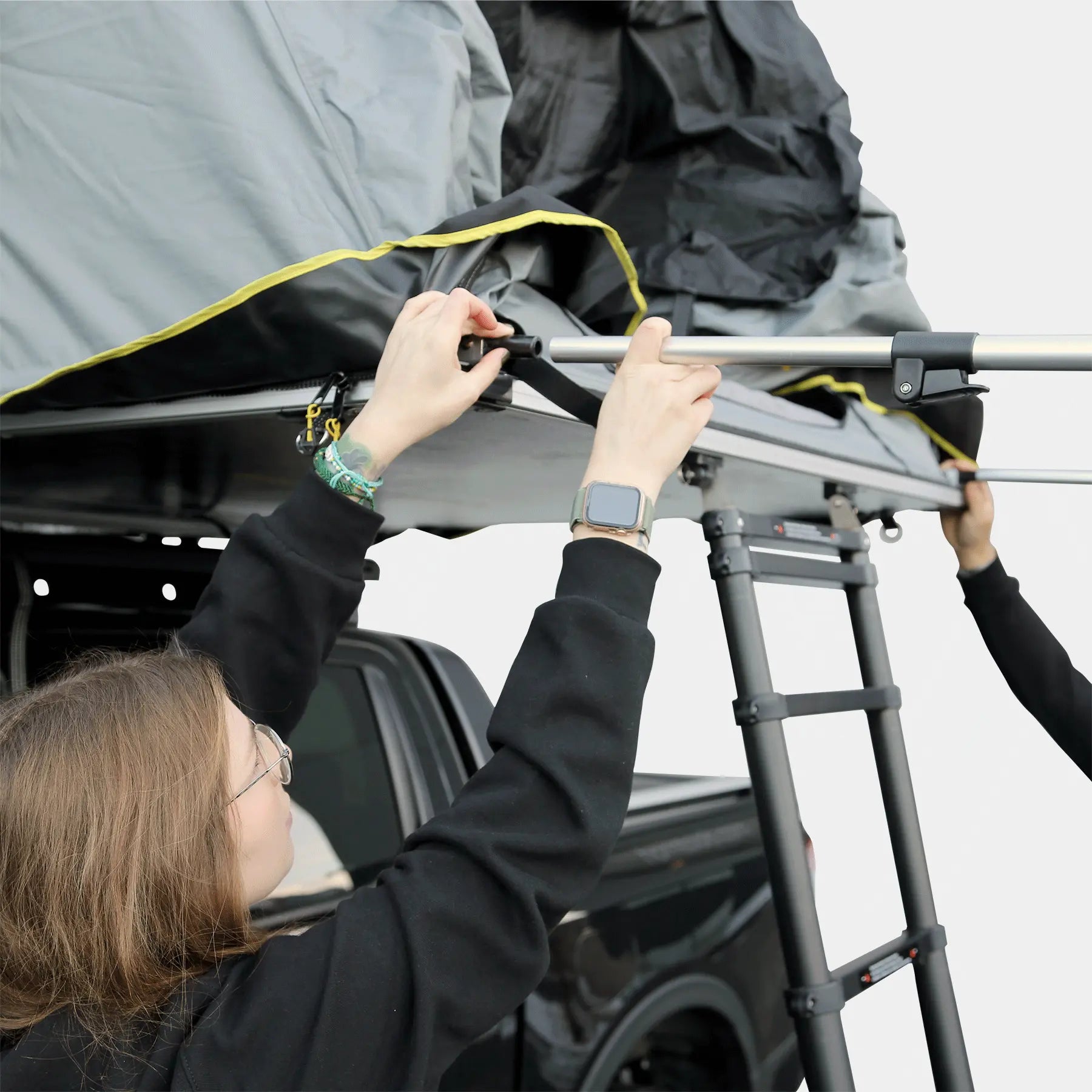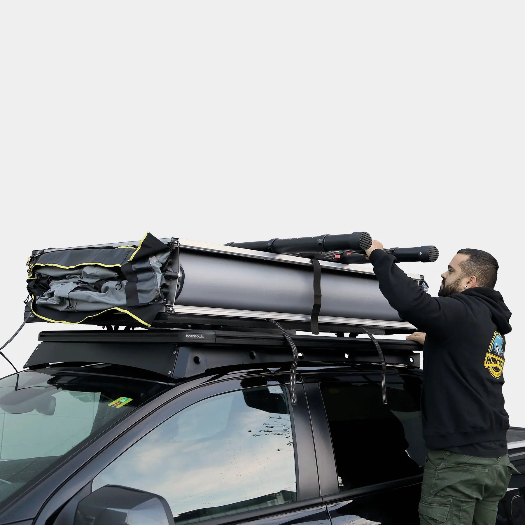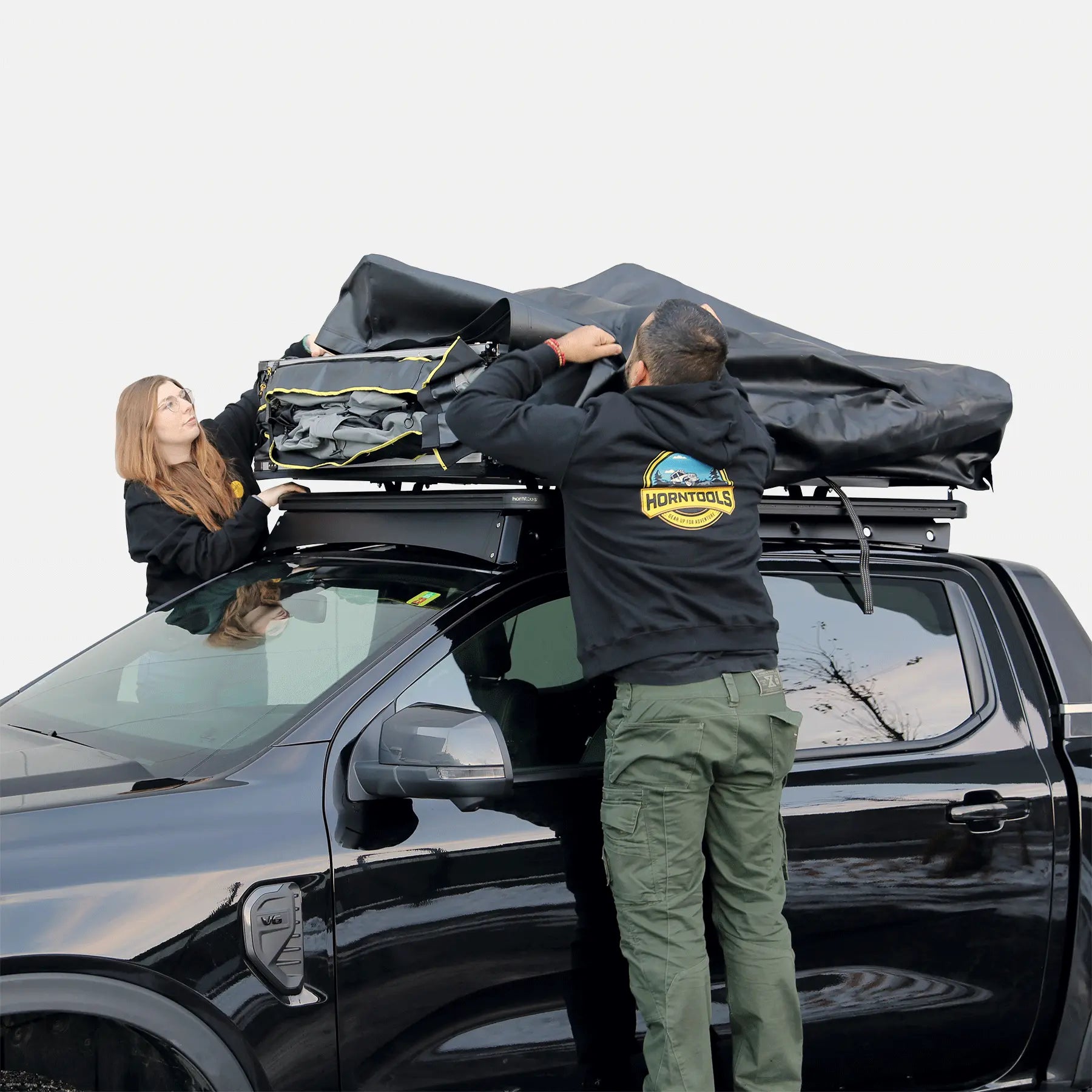Ga je op avontuur? Dan is de Horntools Elements daktent jouw perfecte reisgenoot. Deze hoogwaardige daktent is ontworpen met jarenlange ervaring en voorzien van alle gemakken voor jouw overland- of kampeertrip. Of je nu de bergen intrekt of aan zee wilt overnachten: de Elements biedt comfort, bescherming én stijl.