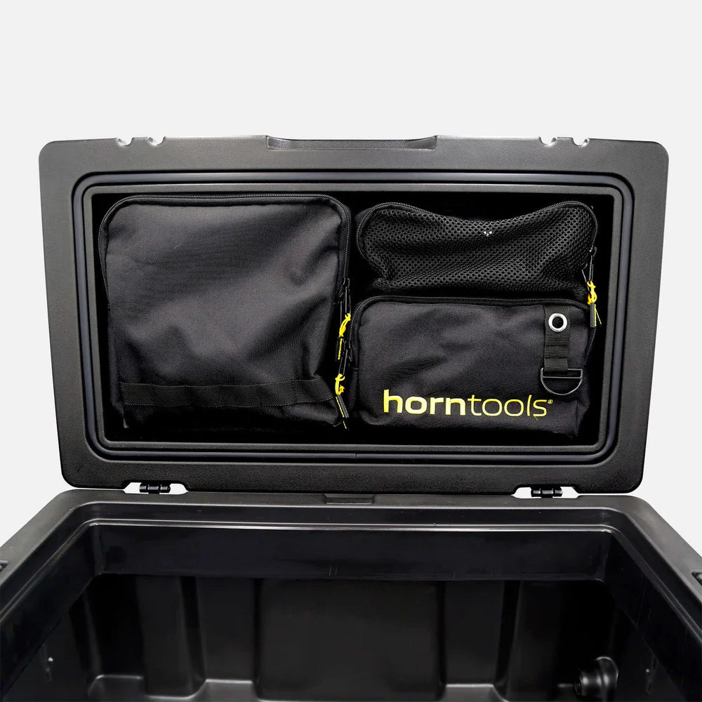 Een ander pluspunt: de Horntools transportbox is niet alleen waterdicht, maar beschikt ook over een aftap in de bodem. Hierdoor kun je vloeistoffen probleemloos verwijderen en de box eenvoudig uitspoelen.