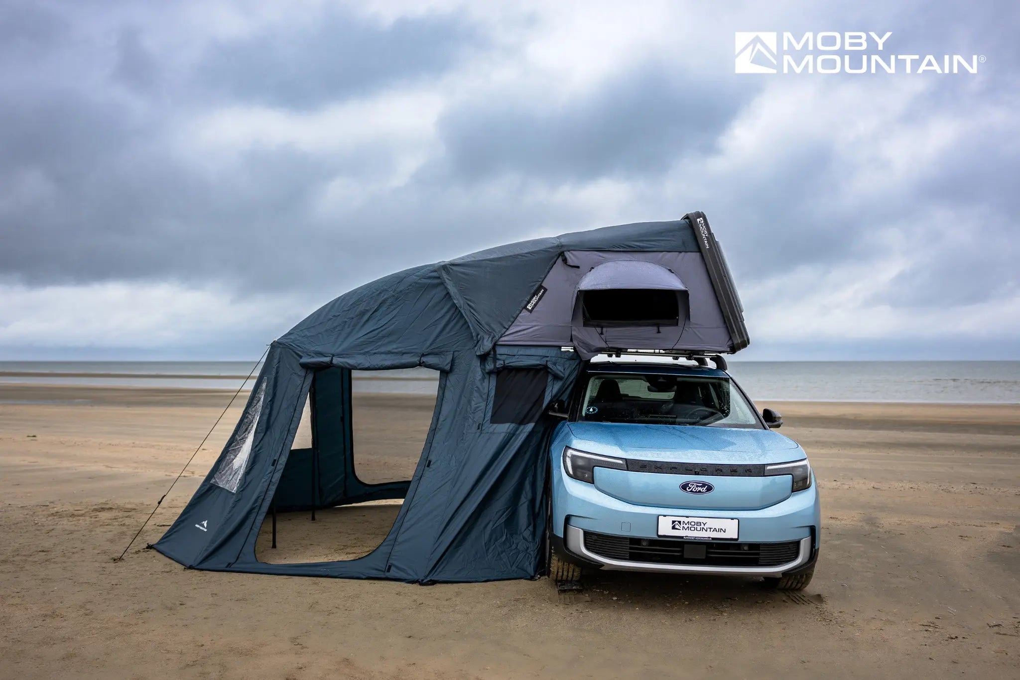 Om een perfecte pasvorm te garanderen, dient de annex in dezelfde maat, kleur en modeljaar als de daktent te worden besteld. De Moby Mountain Annex is ontworpen om bij de daktent te passen, maar het is mogelijk dat deze niet perfect aansluit bij de hoogte van alle auto's. De annex is het beste geschikt voor middelgrote tot hoge voertuigen, zoals SUV's, met dakdragerhoogtes van 170 tot 210 cm. Houd er rekening mee dat de plaatsing van de ramen en deuren kan variëren ten opzichte van de afbeeldingen.