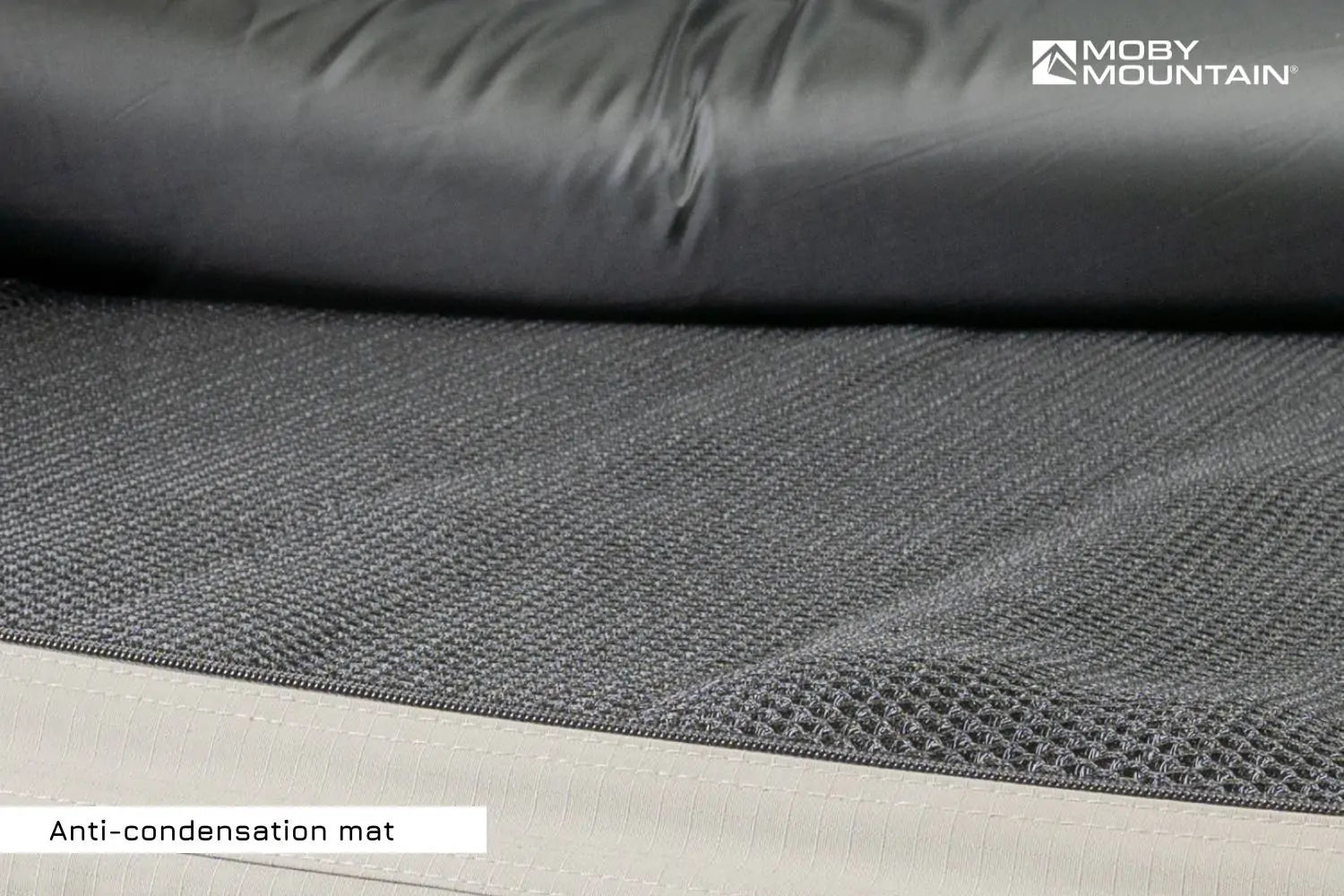 De anti-condensmat van Moby Mountain verbetert het slaapcomfort en houdt de daktent fris, wat het een uitstekende keuze maakt om de daktentervaring te optimaliseren.