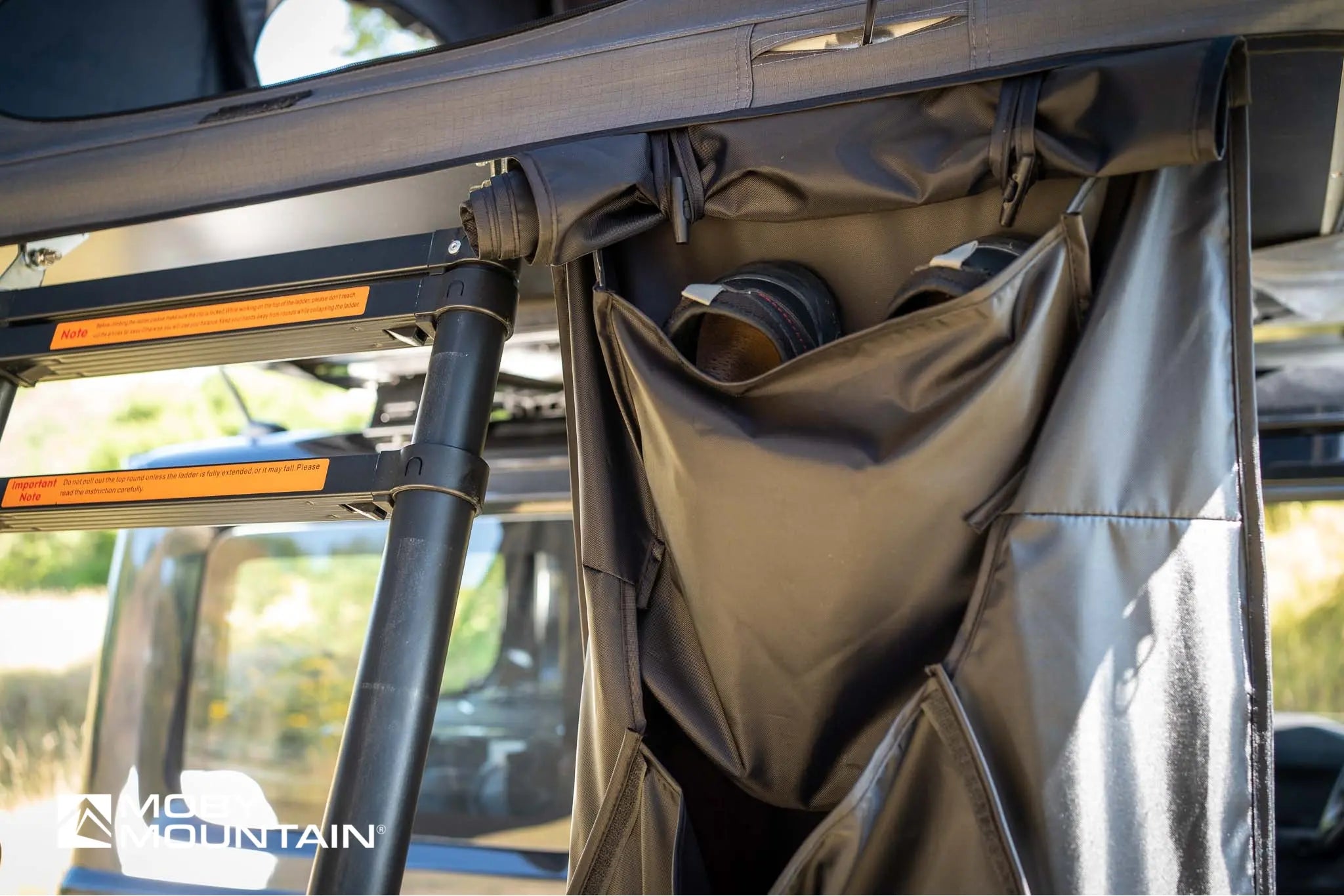 Je hoeft je geen zorgen te maken over ongewenste insecten of bugs, aangezien de daktent is voorzien van fijnmazige muggennetten bij alle openingen.