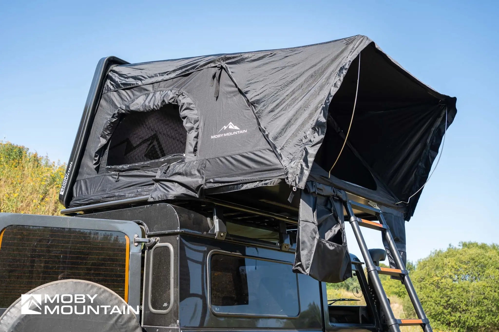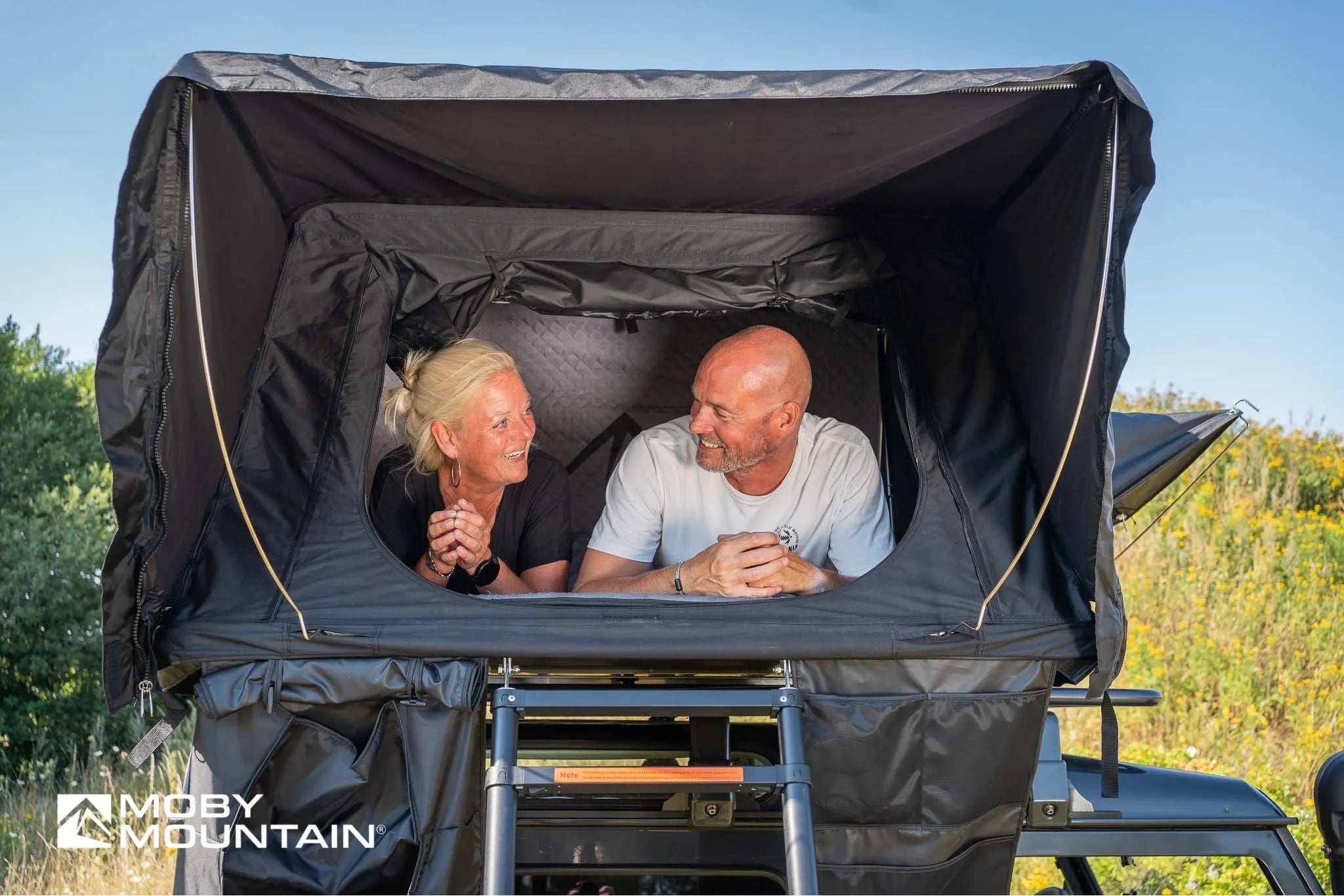Het slimme ontwerp maakt het mogelijk om de daktent uit te klappen aan de zijkant van de auto, wat zorgt voor een grotere slaapruimte dan de meeste andere hard-shell daktenten op de markt.