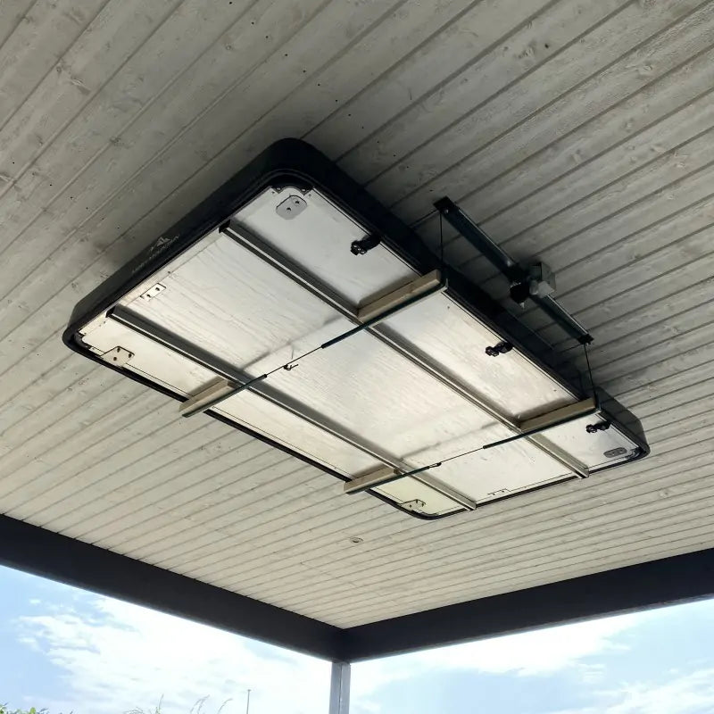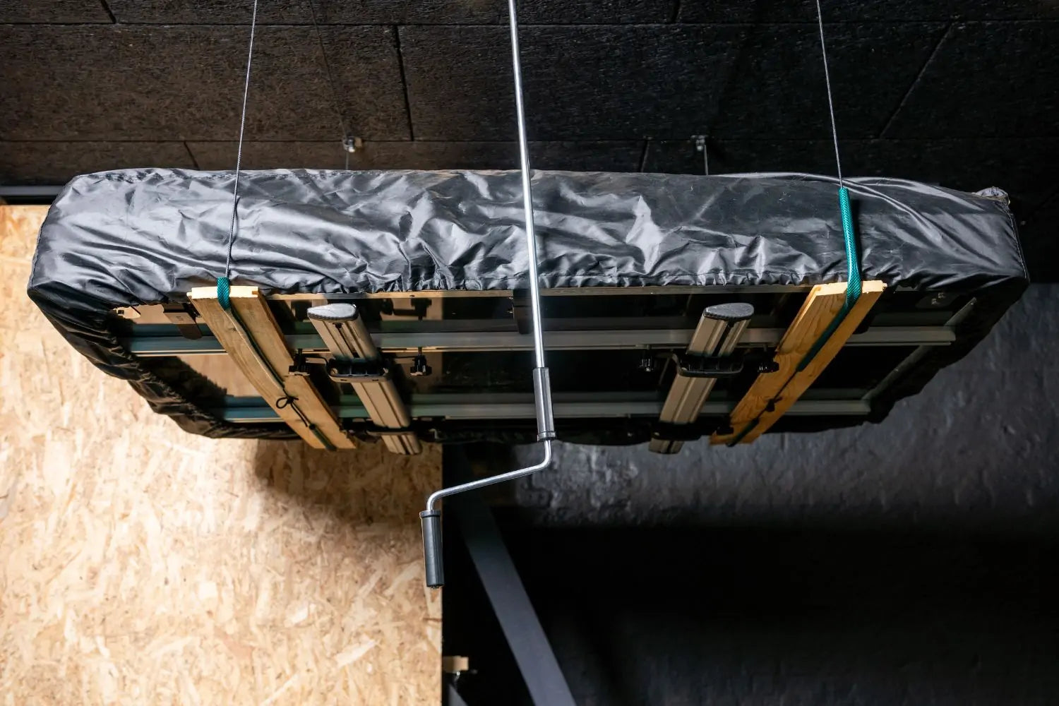 Montage en demontage van je daktent eenvoudig gemaakt! Met de tentlift van Moby Mountain kun je de daktent helemaal zelf monteren, demonteren en deze gemakkelijk opslaan wanneer je hem niet gebruikt. De tentlift tilt de tent omhoog naar het plafond van je carport of garage voor opslag. Je kunt de tent ook helemaal laten zakken tot op de grond voor schoonmaak of drogen. De lift is compatibel met de meeste soorten daktenten.